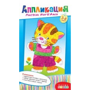 В наборе: цветная основа с рисунком, акриловые нитки (7 цветов), декоративные элементы на самоклеящейся основе (глазки), цветная листовка-образец.