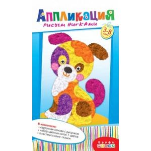 В наборе: цветная основа с рисунком, акриловые нитки (7 цветов), декоративные элементы на самоклеящейся основе (глазки), цветная листовка-образец.