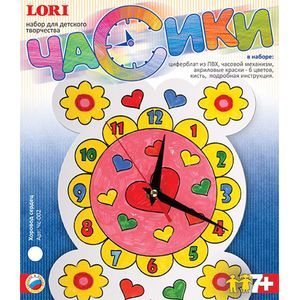 Комплектация: Циферблат из ПВХ, часовой механизм, акриловые краски - 6 цветов, кисть, подробная инструкция.