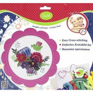 В наборе: фетровая рамка, канва для вышивания, мулине, иголка.