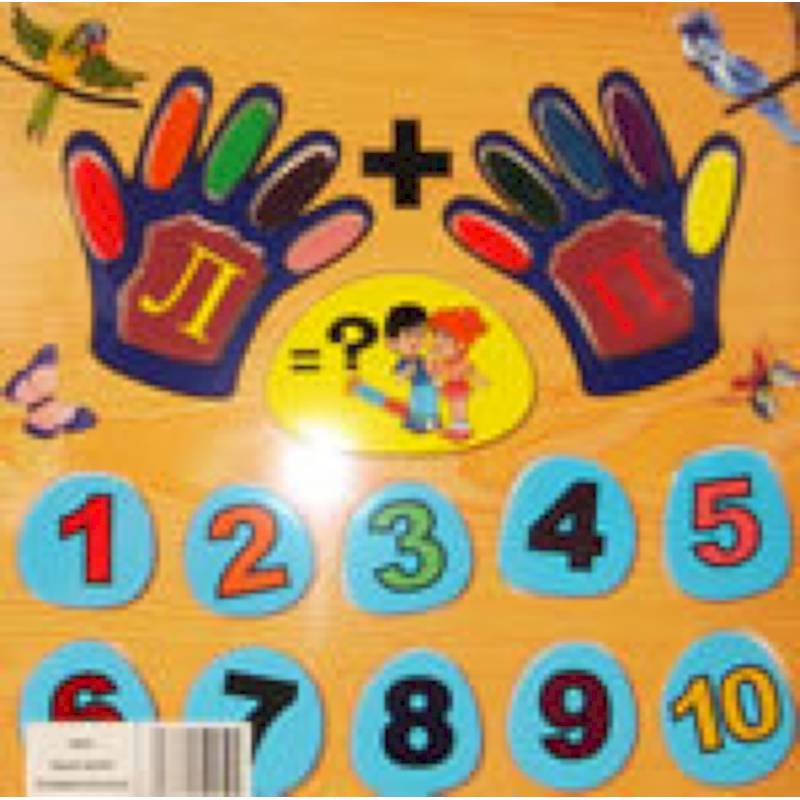 Когда ребенок не понимает, мама обычно объясняет счет 'на пальцах'. Ладошки разборные - можно вставить то количество пальцев, которое требуется, убрав 'лишние'. Кружки с цифрами также вынимаются.