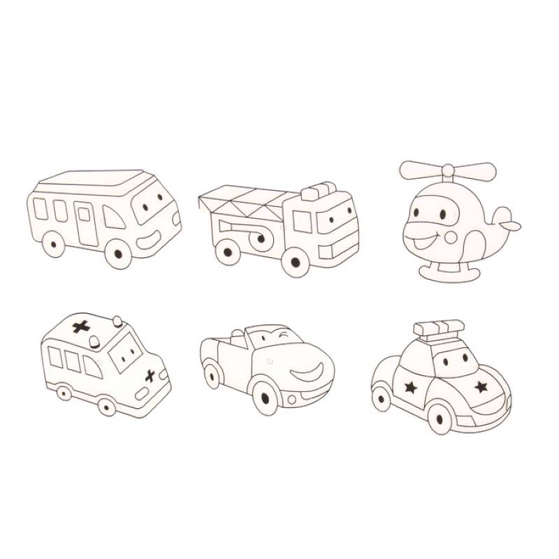 Витражи - мини 6 шт.: вертолёт, пожарная машина, скорая помощь, автобус, полицейская машина
