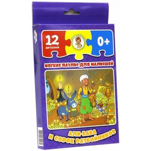 Мягкие пазлы развивают мелкую моторику рук, логическое мышление, усидчивость и внимательность. Собирая картинку, ваш малыш учится соотносить часть и целое, подбирать фрагменты по цвету, форме и размеру. А результат игры порадует его иллюстрацией к любимой сказке 'Али-Баба и сорок разбойников'. Размер готовой картинки 26 на 19,5 см.