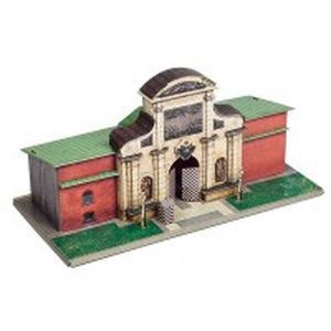 В нишах ворот по сторонам от арки стоят фигуры, олицетворяющие мудрость (со змеёй и зеркалом) и власть (в воинских доспехах).