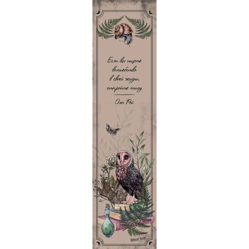 Закладка с резинкой «перехватывает» книжный блок по принципу знаменитых блокнотов молескин. Она практична и гораздо удобнее в использовании, чем обычная бумажная закладка, благодаря резиночке, с помощью которой можно выделить несколько страниц или «перехватить» блок целиком. Такая закладка - отличный сувенир для каждого любителя книг и блокнотов. Дизайн от Марии Суминой, автора книги 'Тайны и магия растений. Путеводитель по миру трав и деревьев', в сети известной как Bruk.Herbs.