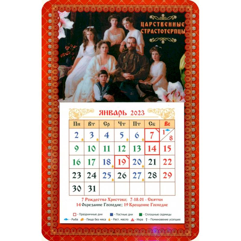 Размеры: магнит 9,5х14,5 см, календарный блок 7,4х7,2 см.