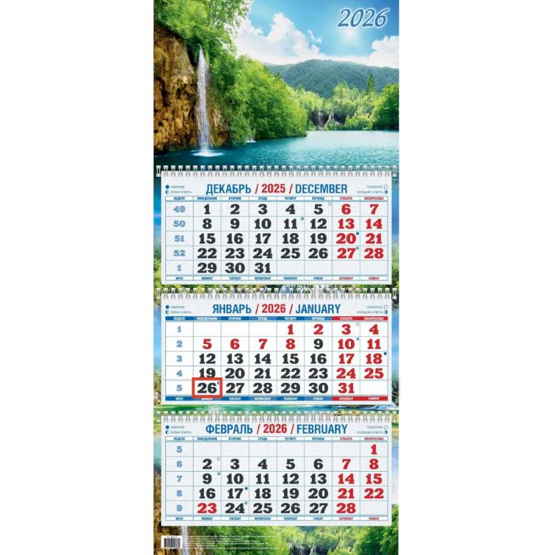 —Календарь 2026г. Водопад на реке