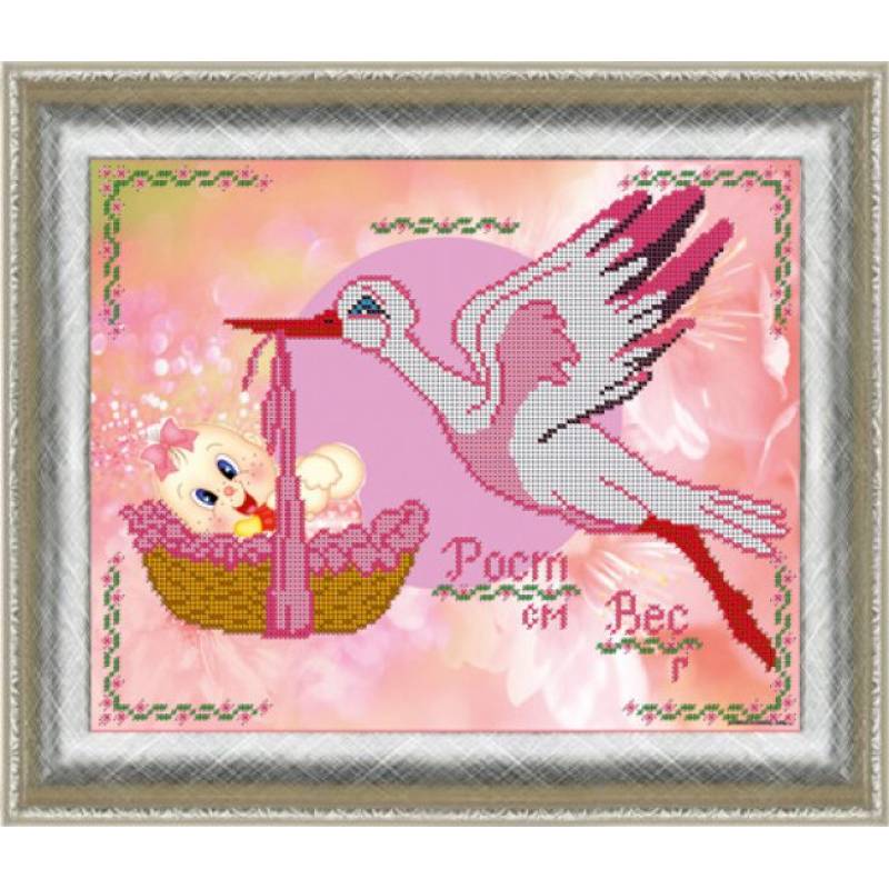 —Набор для вышивания бисером 'Метрика для девочки ' 24х30см №387