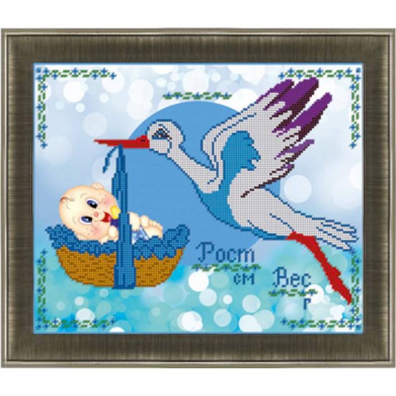 Набор для вышивания бисером 'Метрика для мальчика ' 24х30см №386