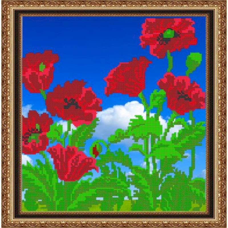 «Светлица» набор для вышивания бисером №029 «Маки» бисер Чехия 32,9*33,2 см.