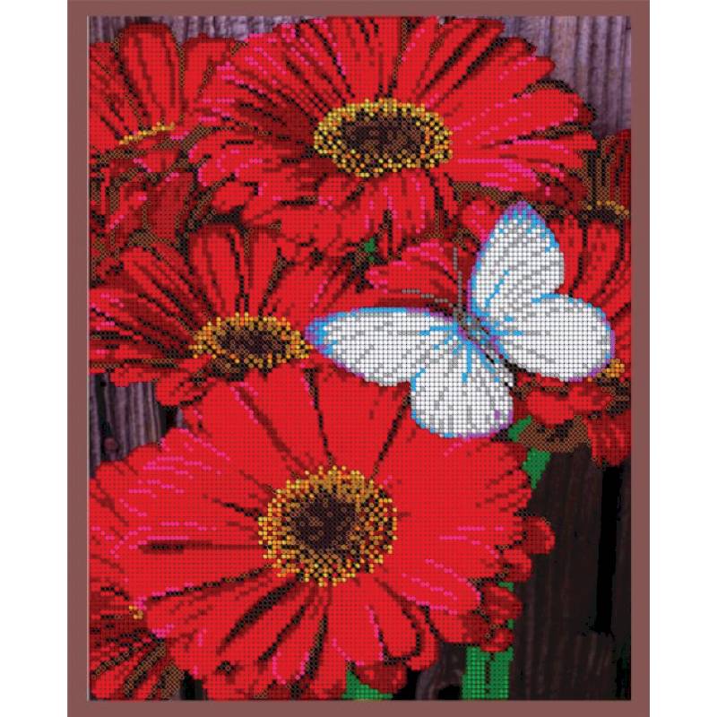 —ВЛ-069 'Герберы' 24x30см набор на атласе для вышивания чешским бисером 'Вышивочка' в коробке